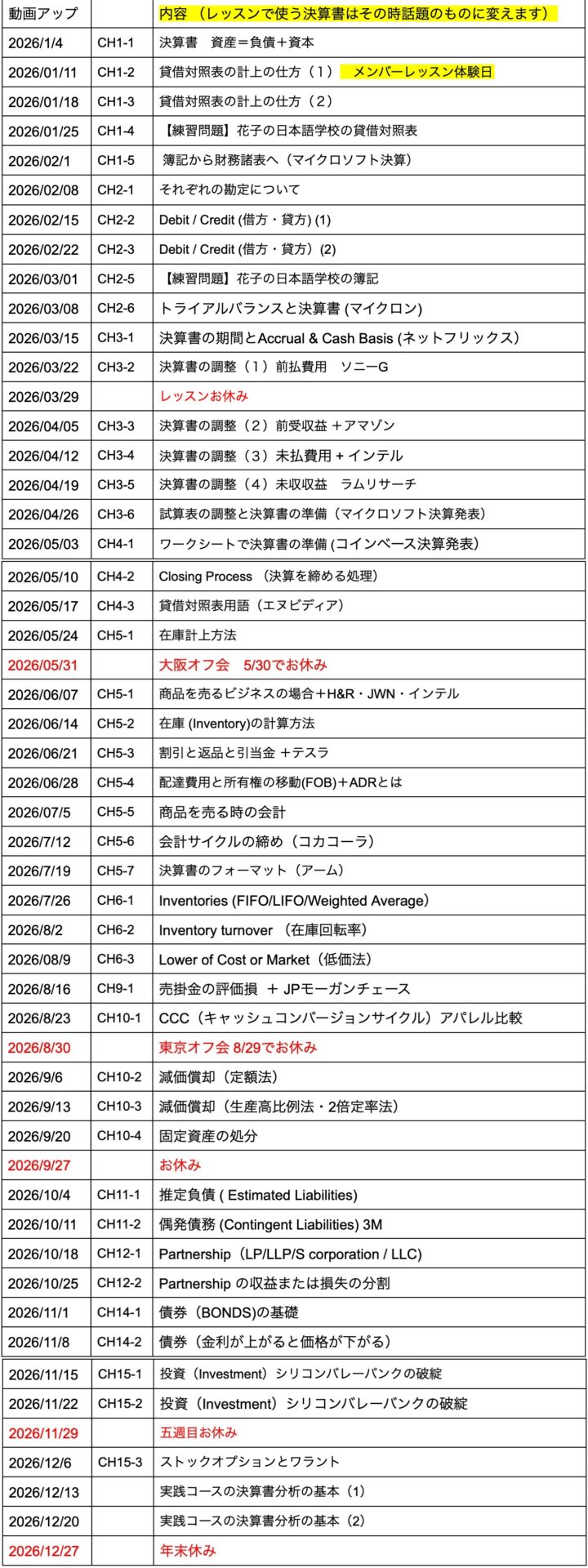 CH1~6 (Accounting 1の単位の範囲)まではテキストブック通りに学び、後半は決算分析に必要な部分を厳選して学習します