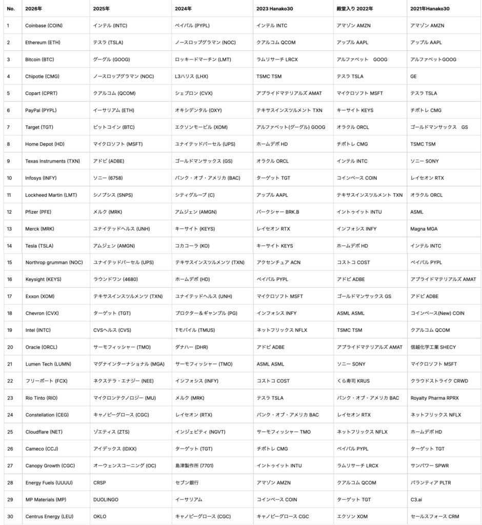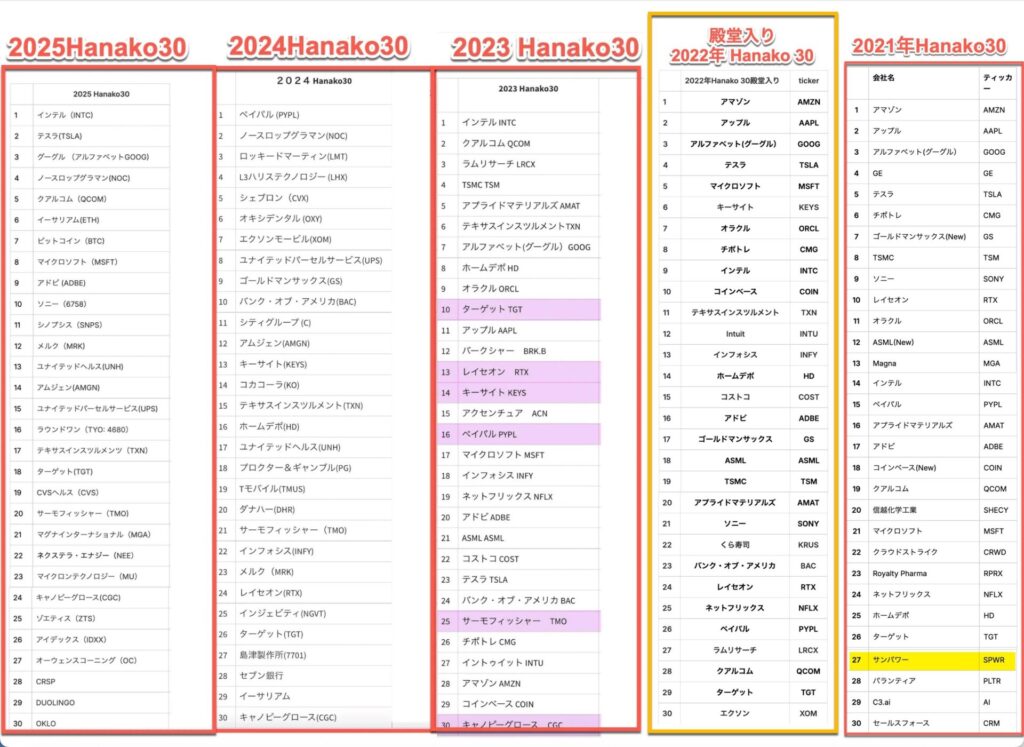 Hanako30とは、花子が好きな米国株30銘柄。
