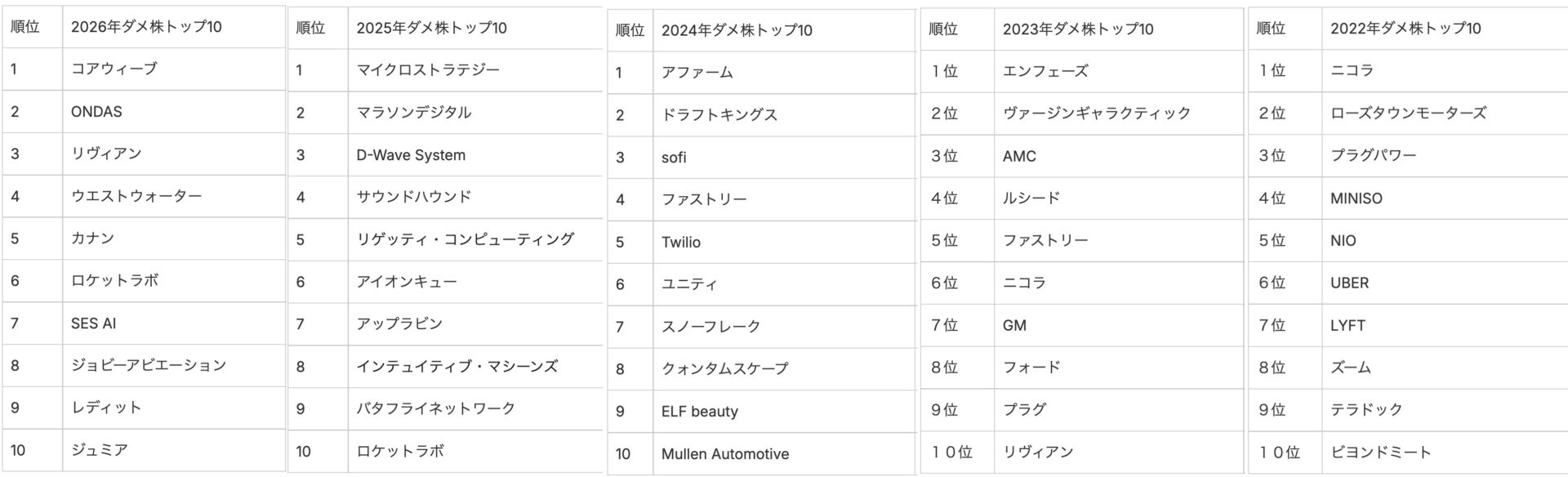 ダメ株トップ10も毎年正月発表!