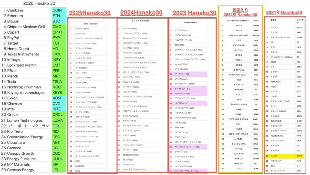 Hanako30とは、花子が好きな米国株30銘柄。